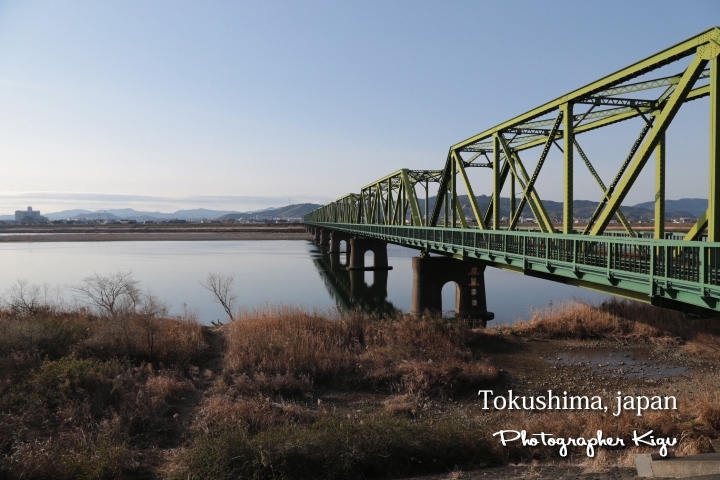 今日の写真は那賀川、鉄橋、なかちゃん記念碑です。
