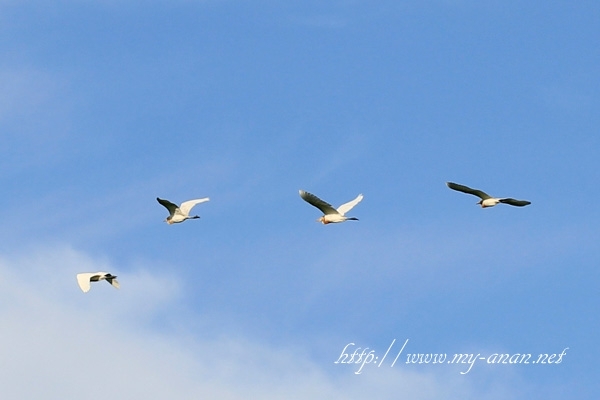 青空を気持ちよさそうに白鷺?が飛んでいました。