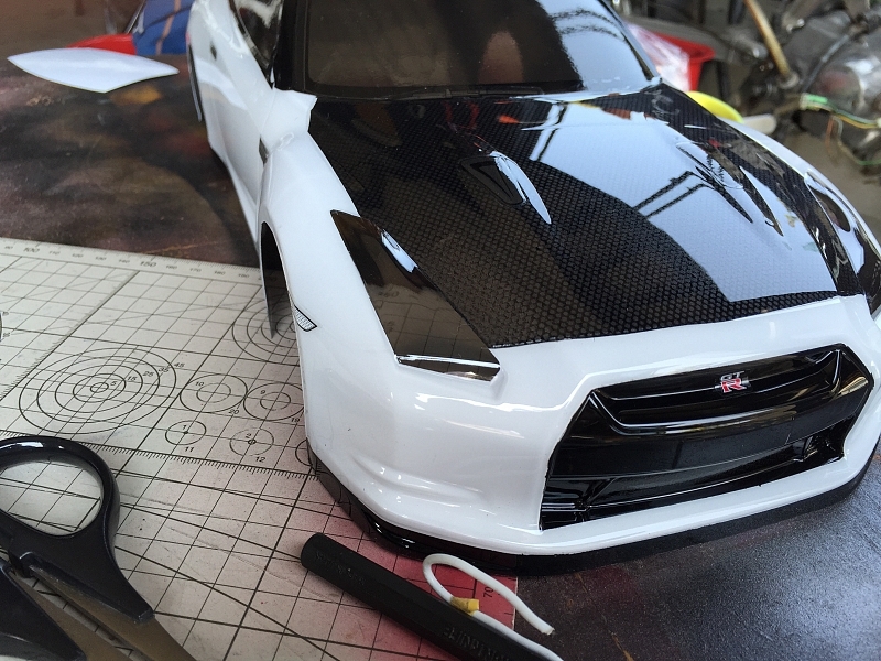 今日の作品はGTR R35を白色ベースでカーボンボンネット仕様に塗装しました。