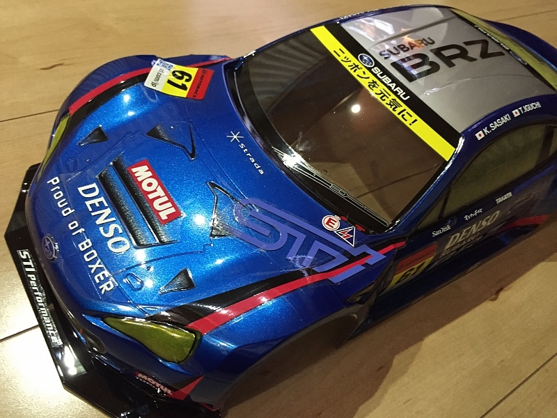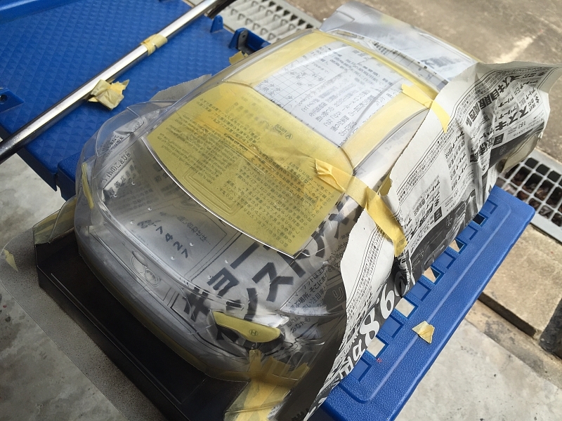 タミヤSUBARU BZR フロント、リアのリップ塗るのに全面マスキング(^^)