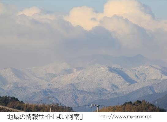 私の住んでいる徳島県阿南市から山の方向に目をやると雪が積もっているのがわかります。