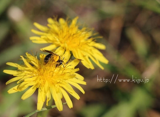 今日自転車で出勤していたら美味しそうにタンポポの蜜を食べている蜂?と遭遇。