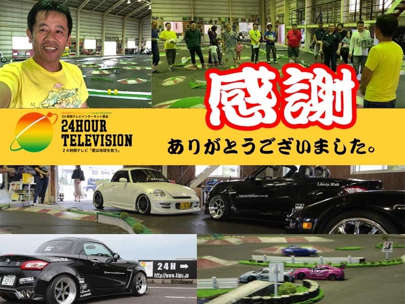 24時間チャリティーのお礼今年も日本テレビ24時間チャリティ募金会場として参加させていただきました。 今年のイベントとして、ラジコン24時間耐久イベントと初の車バイクの展示イベントもさせていただきました。 ラジコンイベントは24時間たくさんの方に支えられ夜中の2時3時が来ても大盛り上がりで、24時間最後の20分の総走りは圧巻でした。 車バイクの展示は、遠方よりリバティーウォークGTK車を見に来ていただき、募金をたくさんの方からいただきました。 今年のイベントは大成功で皆様にには感謝しきれないほのどの感謝でいっぱいです。 本当にありがとうございました。 皆様方お預かりした大切な募金を今から責任もって四国放送に届けました。 ほんとにありがとうございました。 |