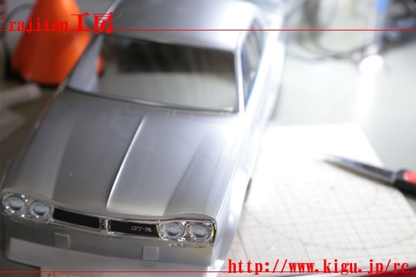 らじてん工房「ラジコン天国徳島」では、名車、ハコスカオーバーフェンダーを同色塗装をオーダー受けて製作中です(^^)